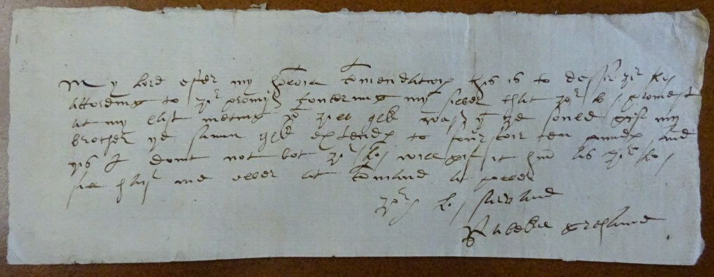 ‘My lord, efter my heartie commendations this is to desire your lo: according to your promis concerning my silver that your lo: promisest at my last meting with yow qlk was that ye sould gif my brother the samen qlk extends to fourscoir ten pounds and this I dout not but your lo: sall haist and ever at command at power your lo: servand