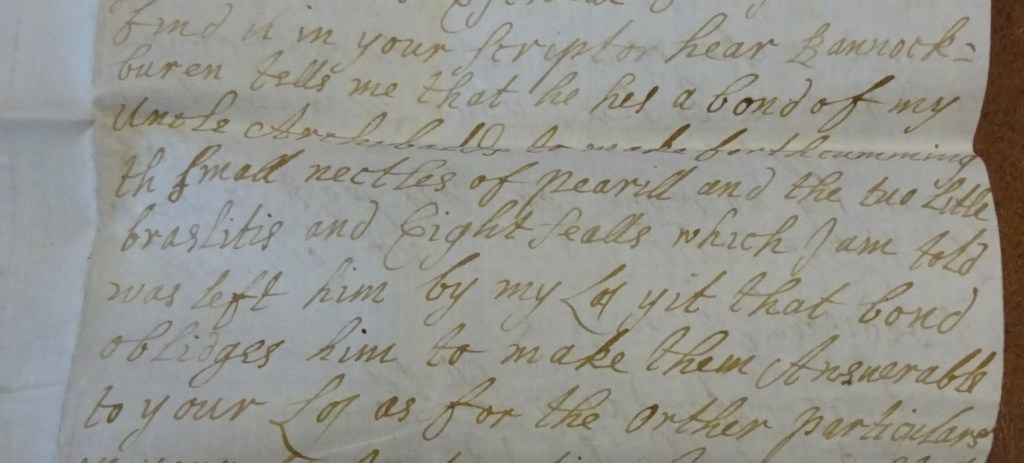 Possibly, Hugh Paterson never received the necklace mentioned in Countess Margaret’s will, it was still in Uncle Archie’s hands in 1683.