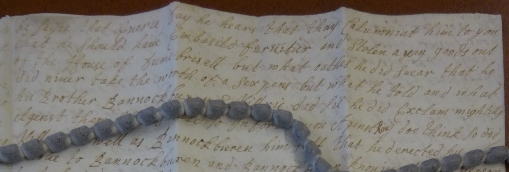 Charles extracted an apology for Hugh Paterson, asking Francis “why did he give ear to theis mein people which he acknowledged he was in the wrong to do it, and to speak so derectilly to Bannockburen how (who) did never give your Lo. anny wrong information of him but which he could not nor did go agens thimself, He desired me then ernestily to tell Bannockburen he did not in the least mein by him, and then he told me your Lo. should command him and all the things he hes to, So I cam away …”