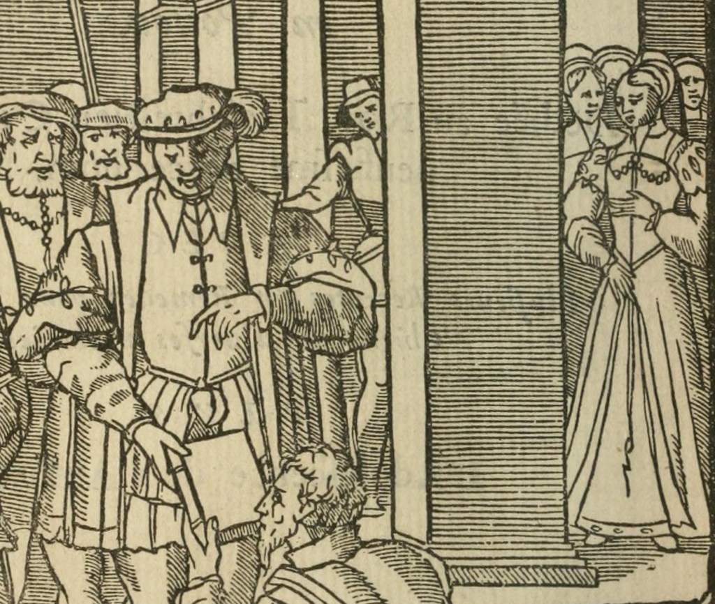John Calvin commented on these verses that ‘women will spare no cost to make themselves fine: yea they will pinch their bellies, and offer violence to nature itself, that they may have wherewith to attire themselves the more costly & sumptuously’. He briefly mentions the Roman Lex Oppio, a sumptuary law defended by Cato the Elder. Calvin’s 1551 Commentary was dedicated to Edward VI. Both John Aylmer and Antoine de Noailles commented on sober female dress at the court of Edward VI. According to Noailles, Mary I put aside former superstitions which proscribed wearing ‘jewels and coloured gowns’ and she and most of her companions wore French-style gowns with wide sleeves (at least, on formal days, according to the Venetian ambassador Giacomo Soranzo). Noailles wrote to Mary of Guise in October 1553 that the English court now displayed a surfeit of ‘la pompe & gourgiaseté‘.5